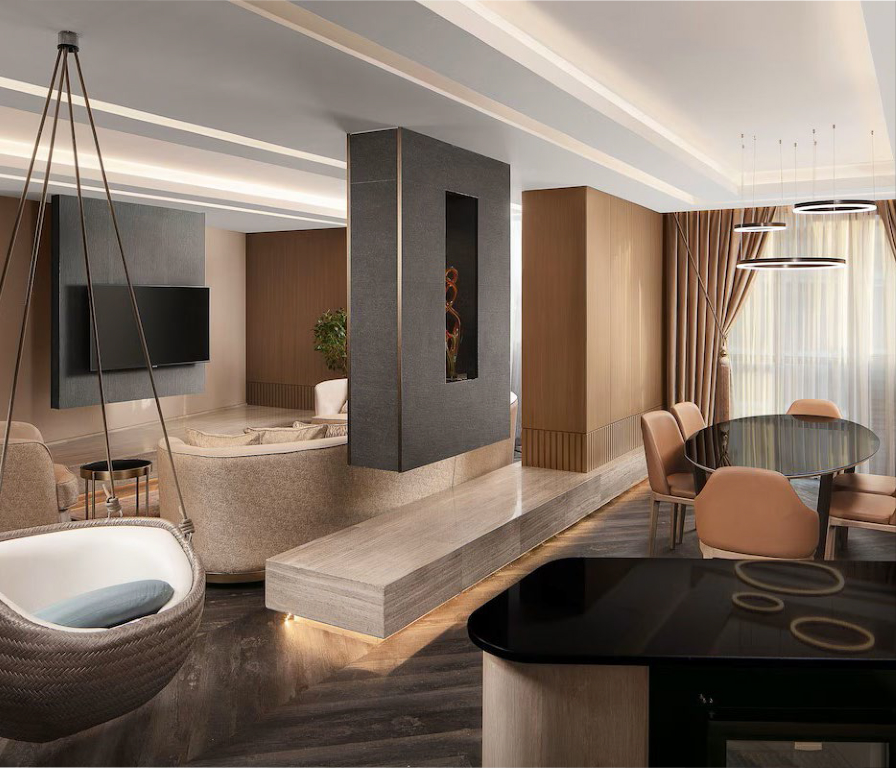 Sheraton İstanbul City Center, modern ve lüks bir konaklama deneyimi sunmak amacıyla kapsamlı bir yenileme sürecinden geçmiştir. Zeyn Mimarlık olarak, bu özel projede kral dairelerinin tasarım ve uygulama süreçlerini üstlenerek, misafirlerin beklentilerini karşılayan zarif ve işlevsel alanlar yarattık. Otelin genel atmosferini yenilerken, LVT dönüşüm işleriyle mekanların dayanıklılığını ve estetiğini artırmayı hedefledik. Restoranlara ek alanlar kazandırarak misafirlerin sosyal alan ihtiyaçlarına cevap verirken, otelin kış bahçelerini de tasarlayıp inşa ederek ferah ve doğal bir ortam sağladık. Ayrıca, tüm odaların detaylı renovasyon çalışmalarını tamamlayarak otelin her köşesini yüksek standartlarla modernize ettik.